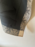 Woven cotton jacquard tea towel "Curiosites - Animales " – Animal Curiosities - designed and produced by Jacquard Français in France. This luxury damask tea towel features a veritable cabinet of animal curiosities, mainly birds and butterflies displayed in a glass cloche. Coloured in deep night blue and black the design is framed with an attractive stylised border in greys and cream.